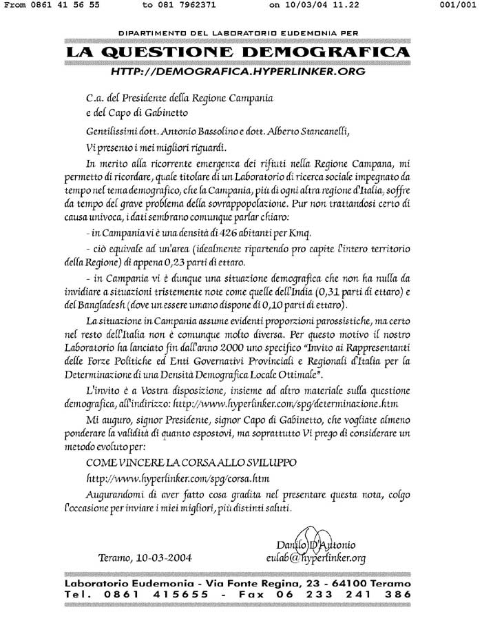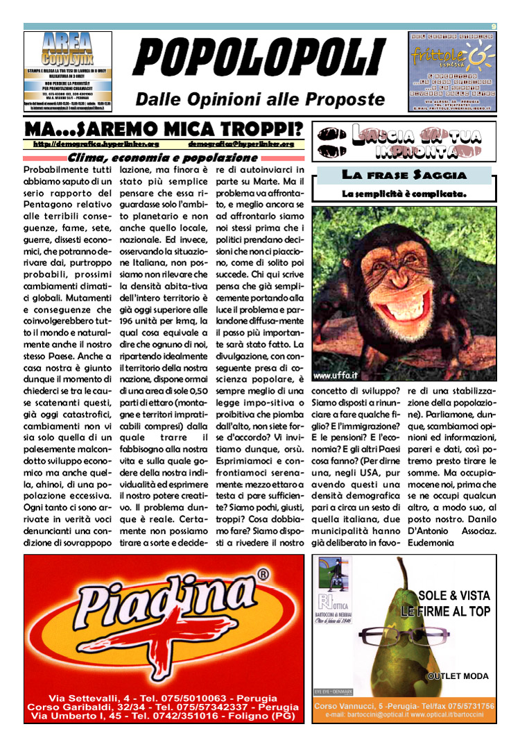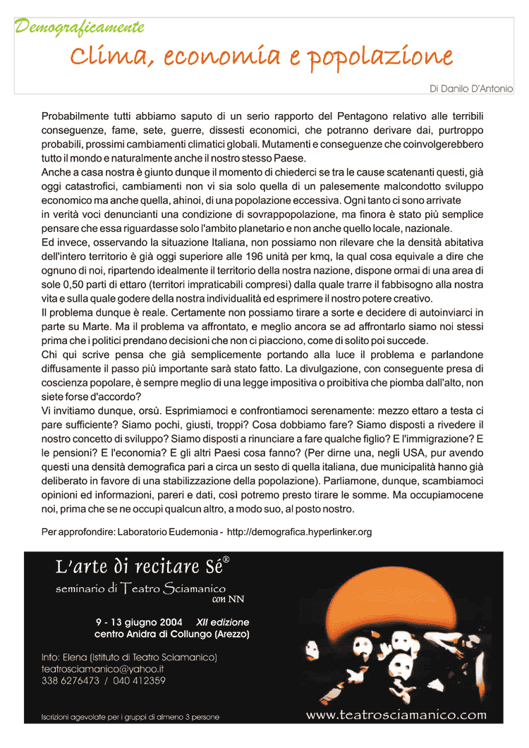 Esiste una necessità immediata cui la comunità umana mondiale deve provvedere: sia allo scopo di difendere l'ambiente naturale e preservare le risorse, che allo scopo di spegnere i focolai di violenza già accesi ed evitare altre guerre, che allo scopo di preservare il benessere psicofisico dell'umanità intera e di far sì che ogni essere umano sulla Terra abbia di che vivere, crescere e gioire, un passo obbligato è sempre quello di prendere coscienza del fenomeno demografico. Solo studiandolo e portandolo nella nostra cultura potremo viverlo nel migliore dei modi.